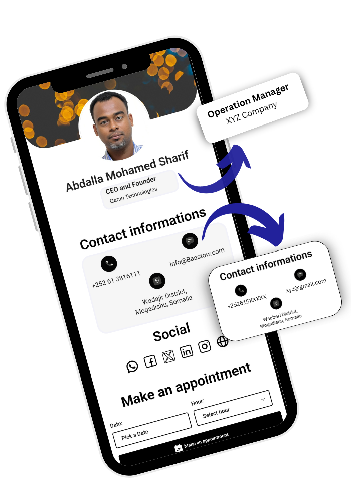 Update on the Go Easily update your contact details in real-time, ensuring that your network always has access to your most current information.